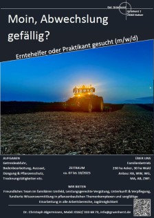 Zeitraum nach Absprache, ca. Mitte Juli bis Ende September/ Anfang Oktober